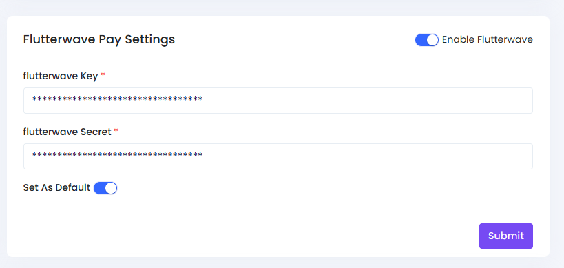 To generate Flutterwave API keys (publishable and secret) for your application, follow these steps: