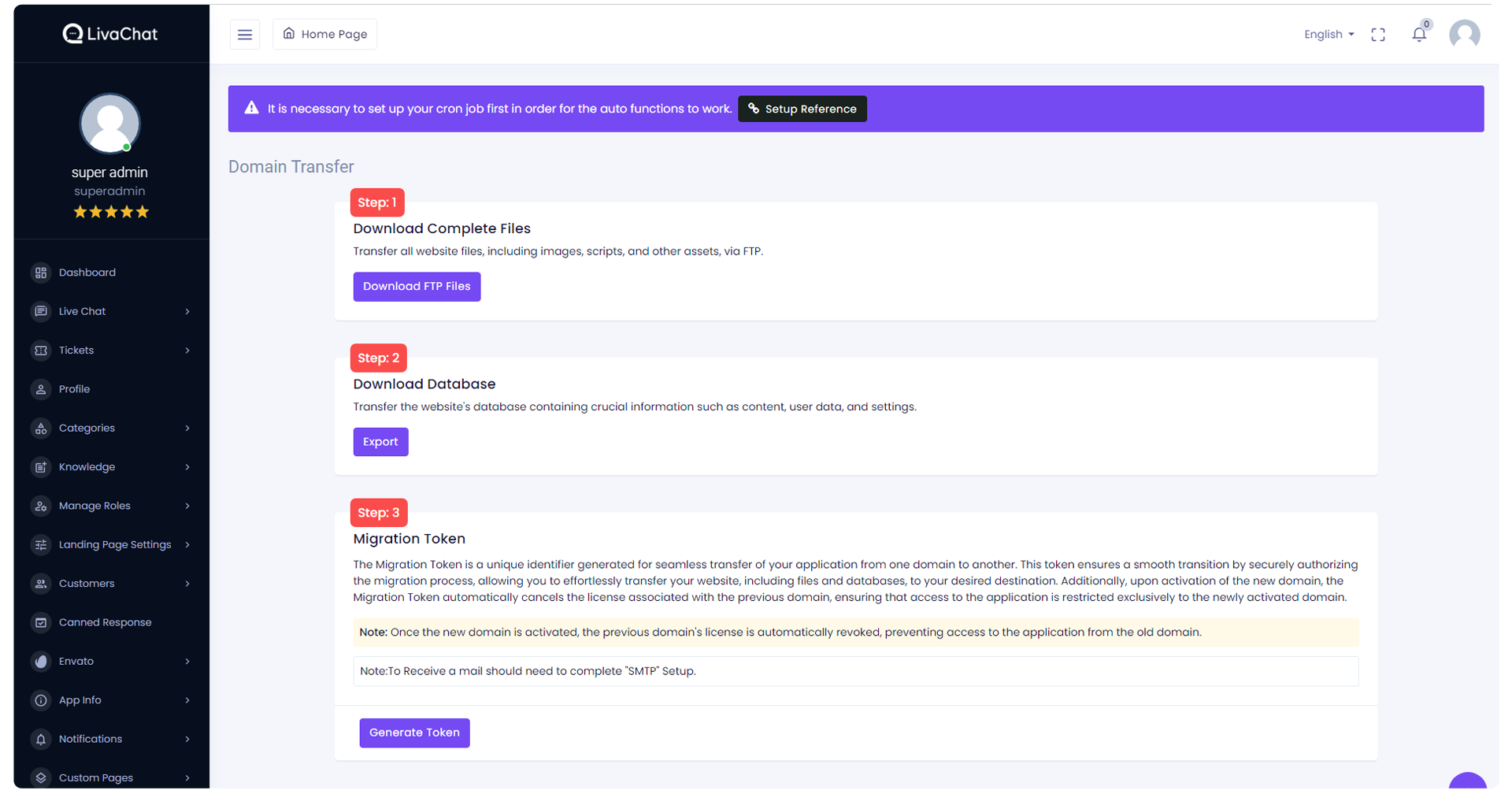 - Whether transferring the application with existing data or moving it without previous data, the Migration Token is crucial for installation on the new domain.