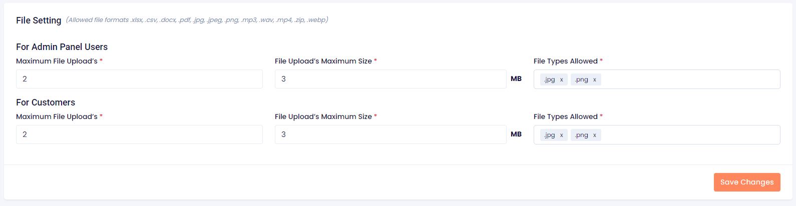 Note : Please click on the “Save Changes” button after setting up your file settings.