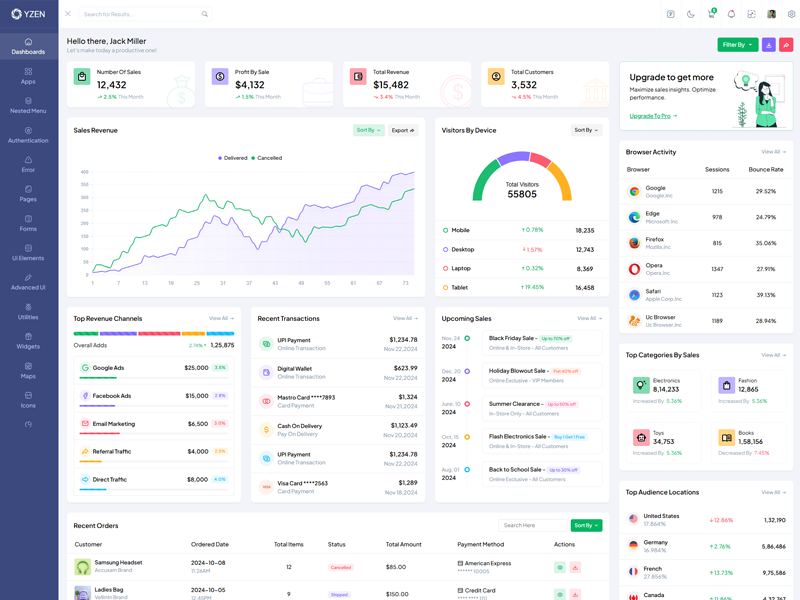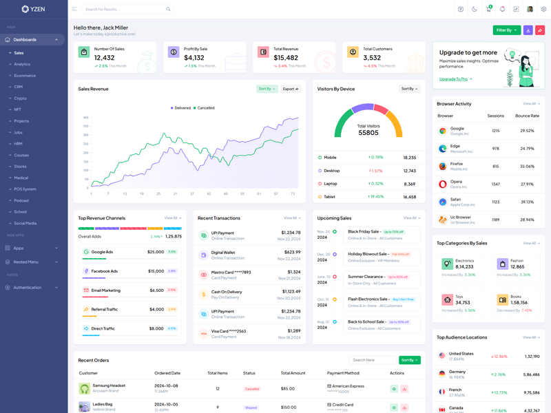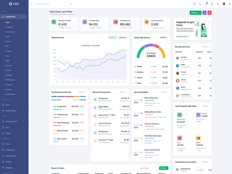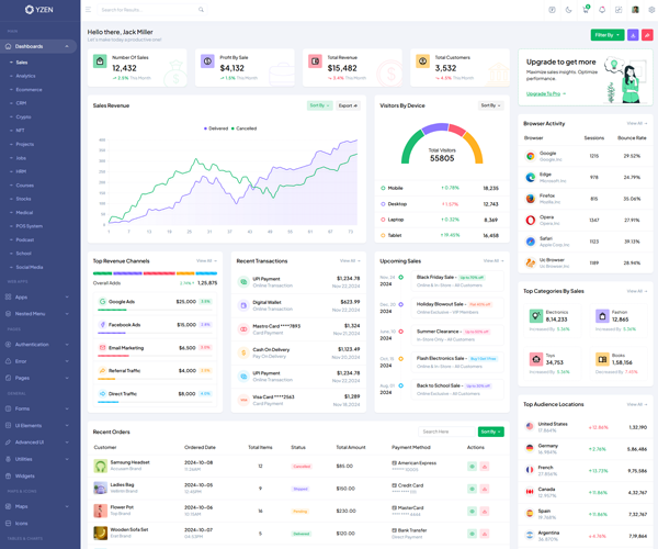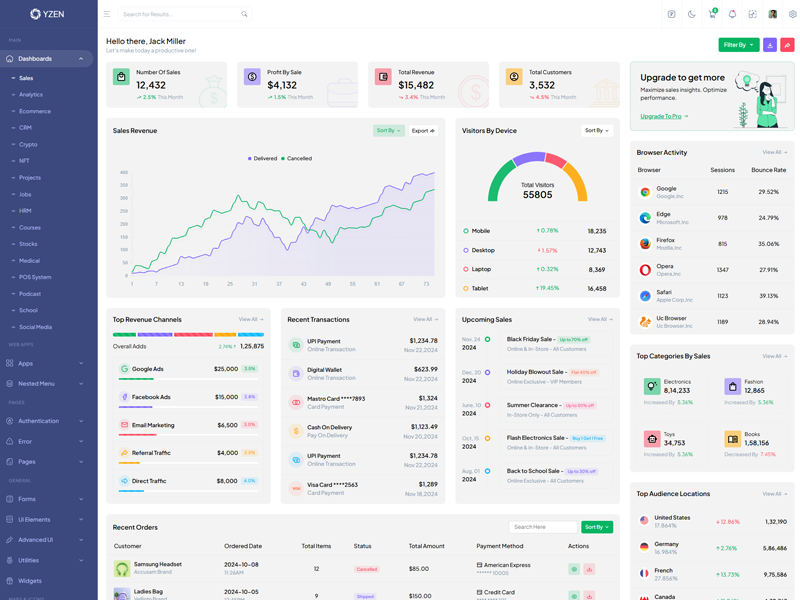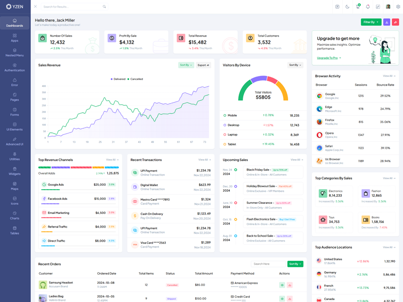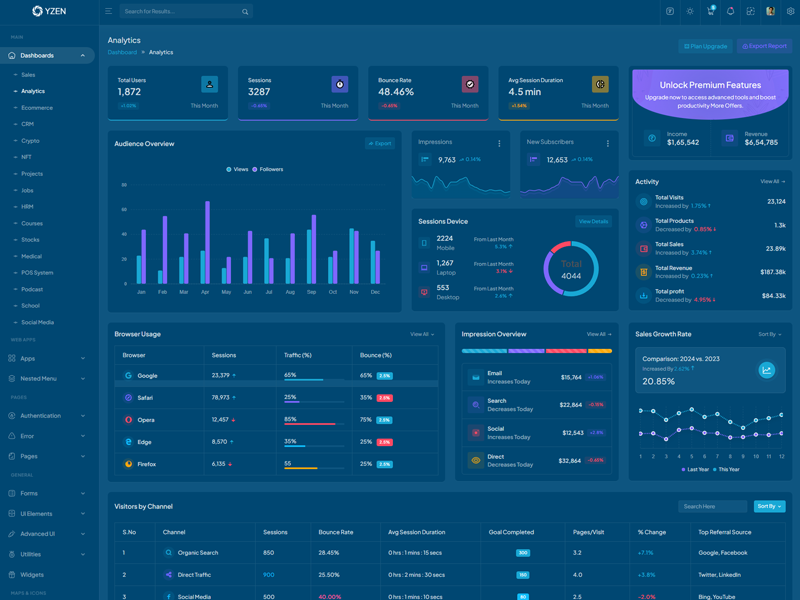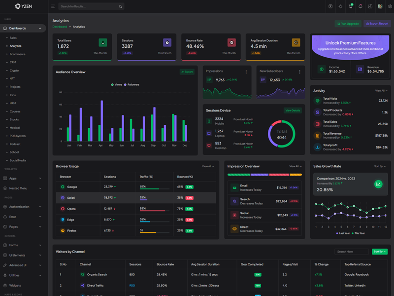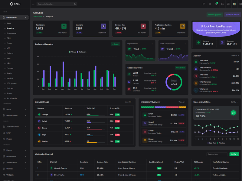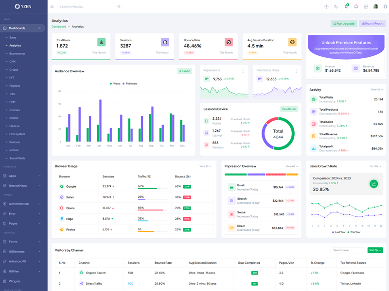 Yzen Admin is flexible and fully customizable. Ready to use your own content, you can easily customize the source files.