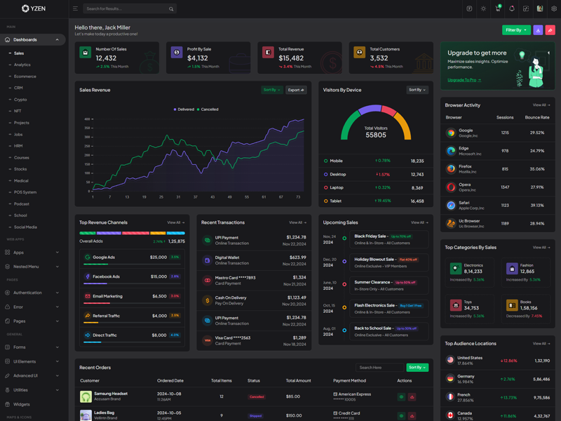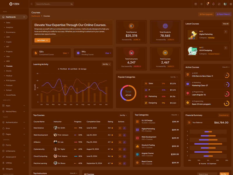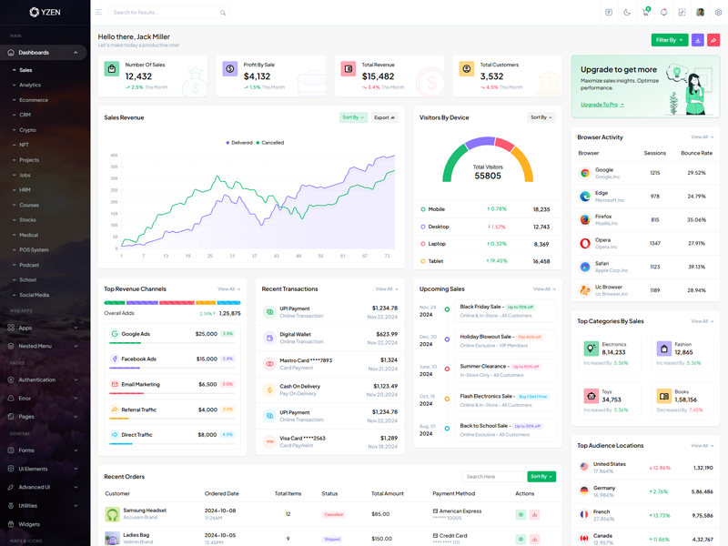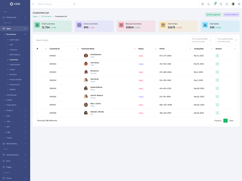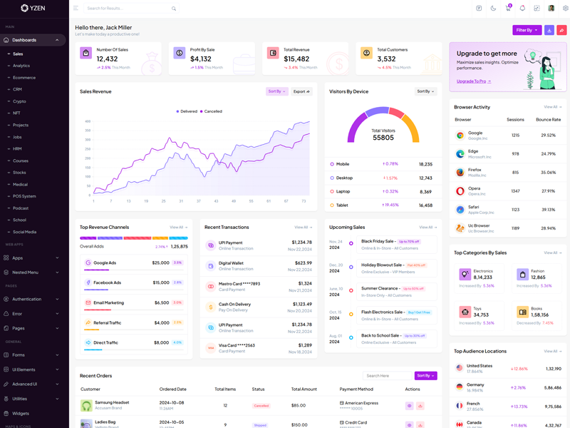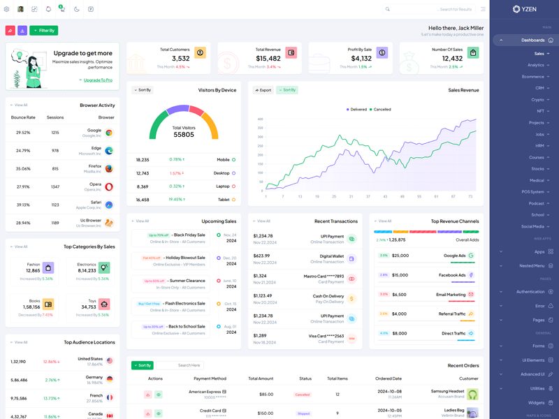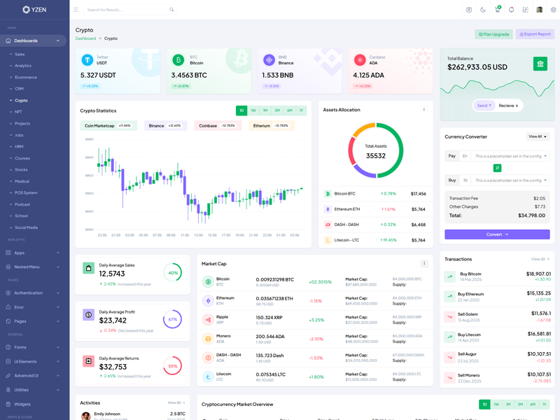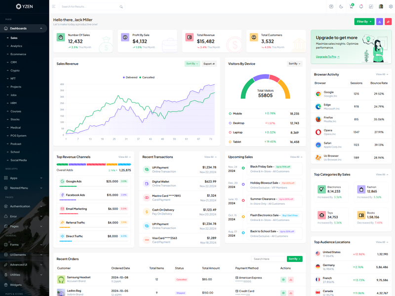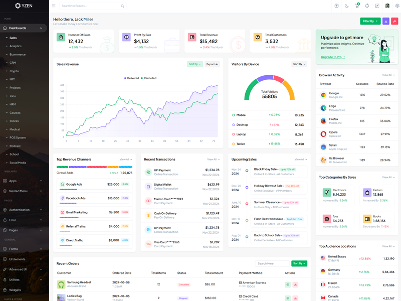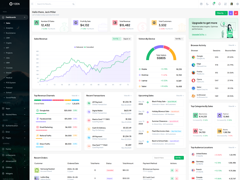 Yzen Admin is flexible and fully customizable. Ready to use your own content, you can easily customize the source files.