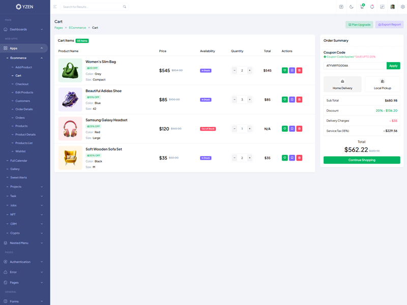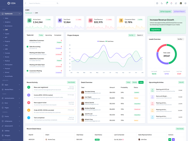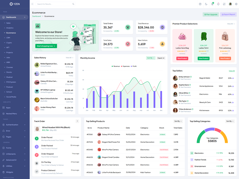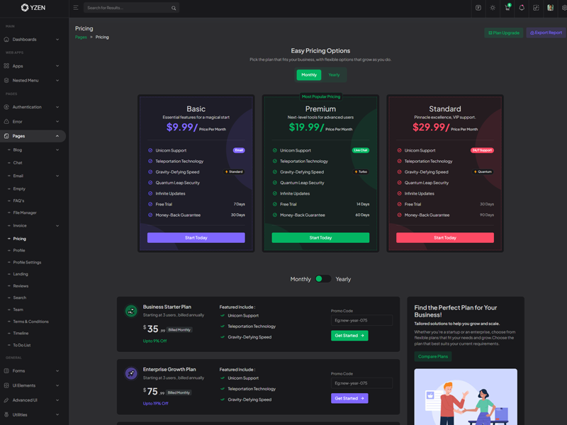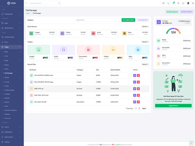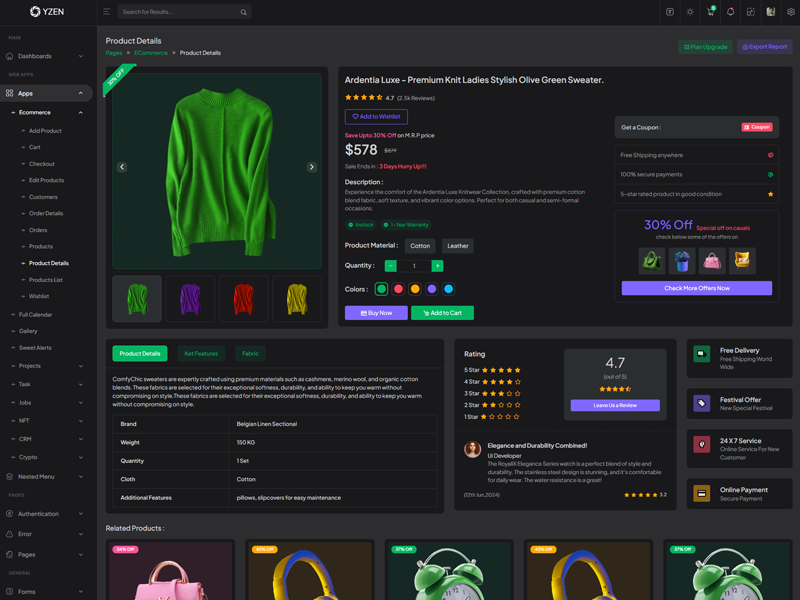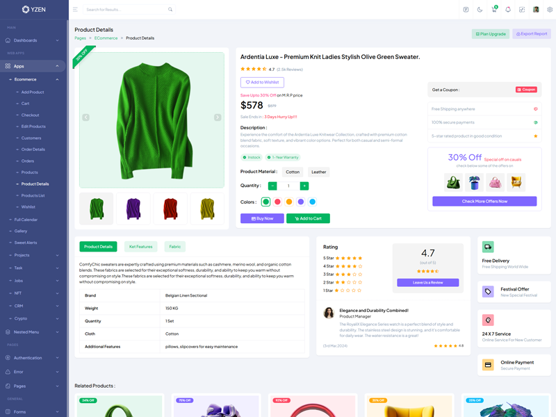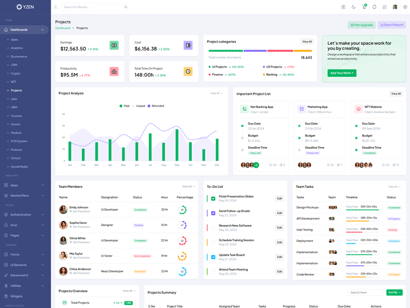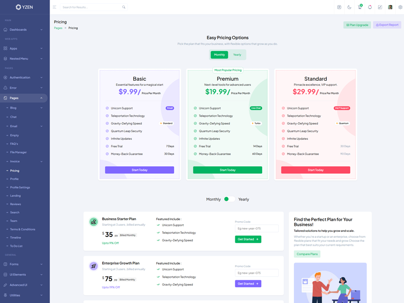 Yzen admin template comes with ready to use features. It has lots of ready-made features saves more time for developers.