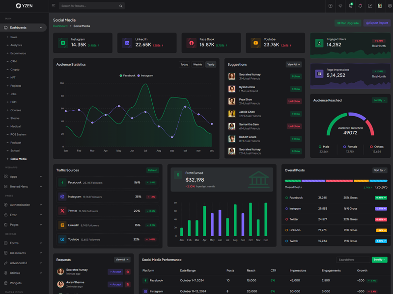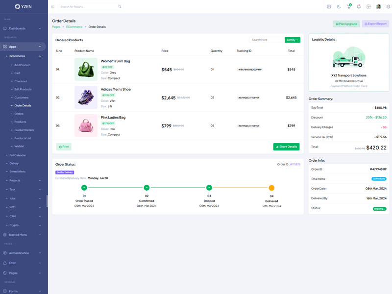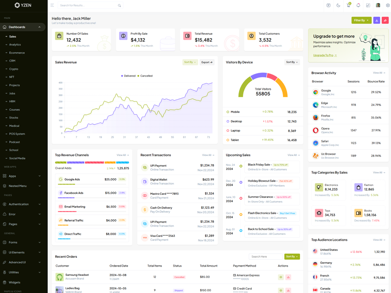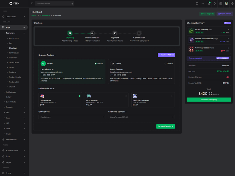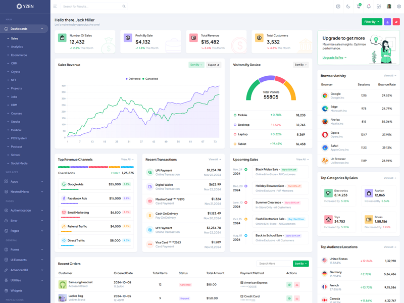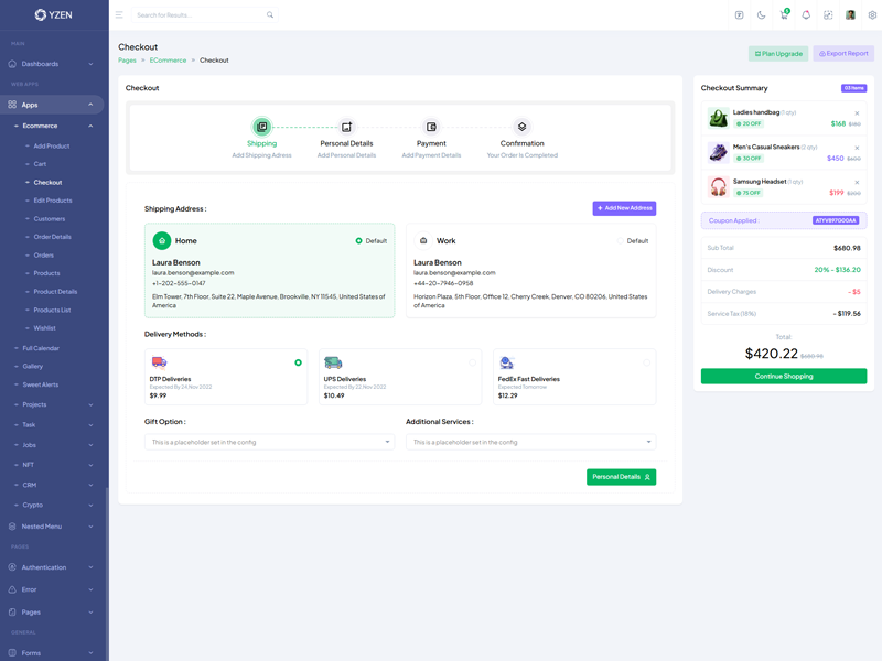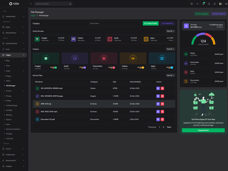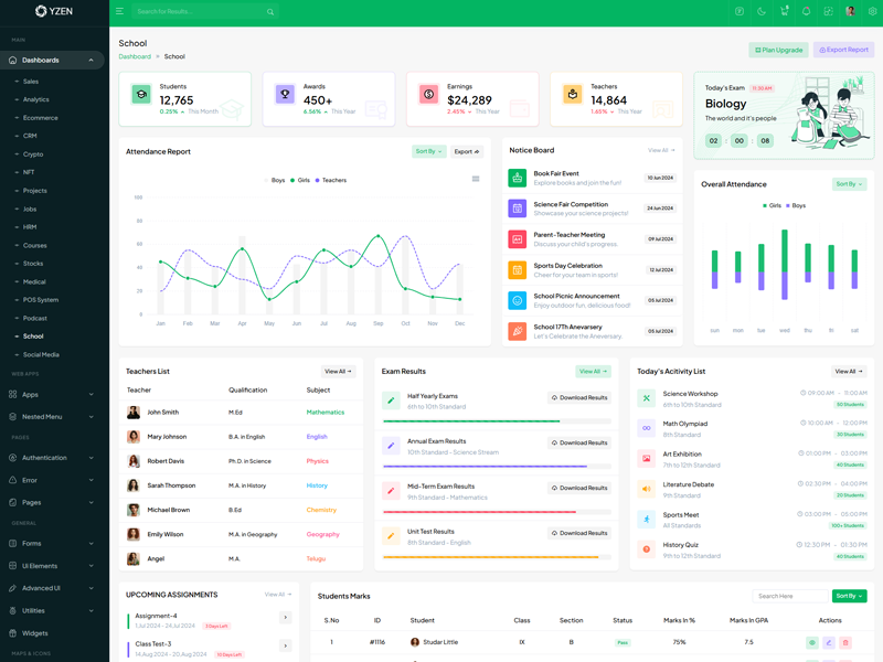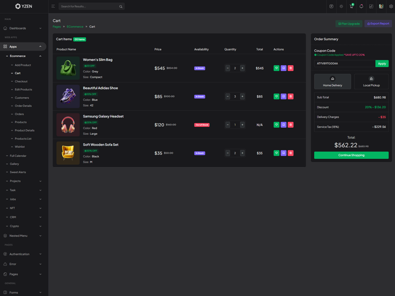 Yzen admin template comes with ready to use features. It has lots of ready-made features saves more time for developers.