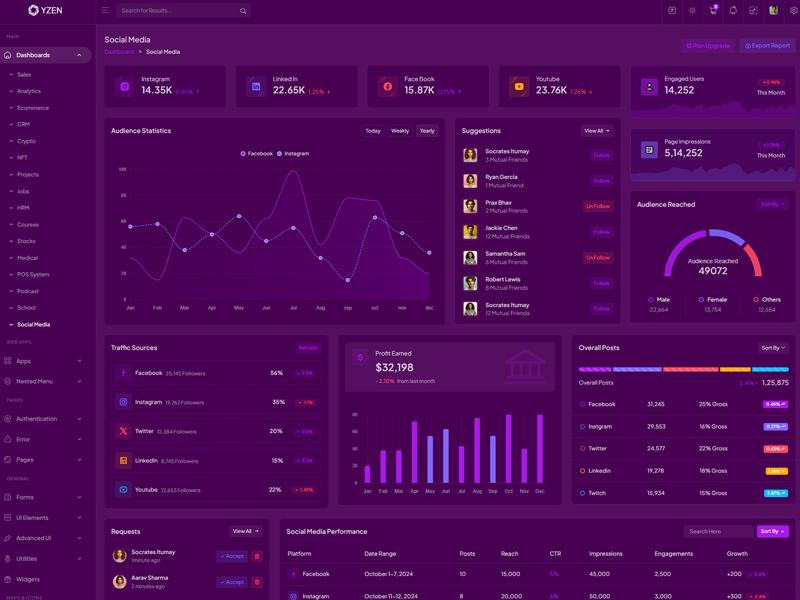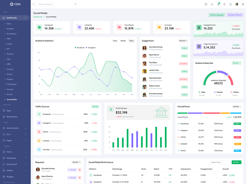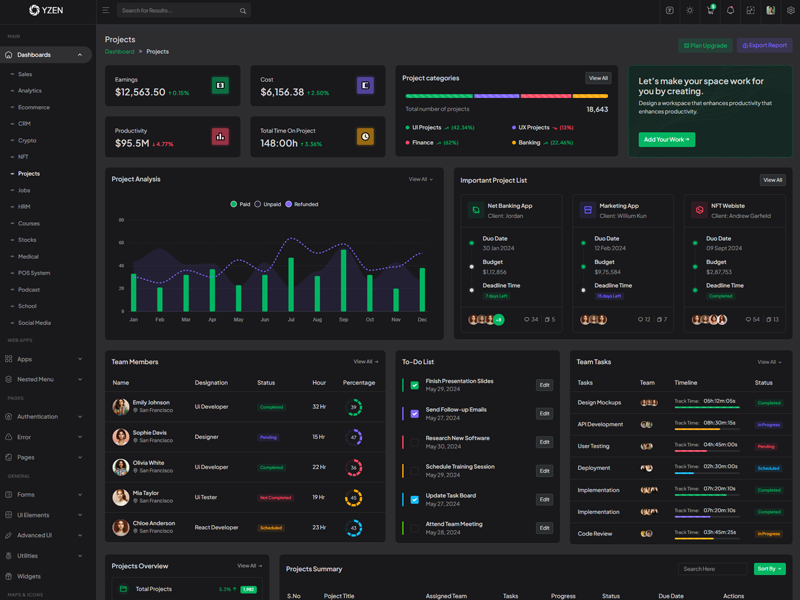 Here, Yzen 16 beautiful dashboards and comes with different types of themes. So that users can choose their best theme and customize the Yzen - Nuxt4 Premium Bootstrap Admin Template according to their choice.