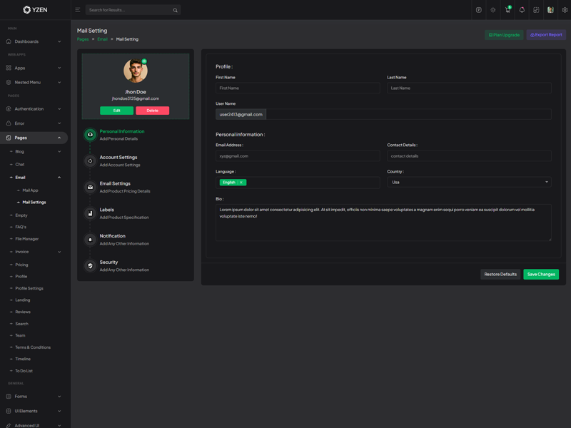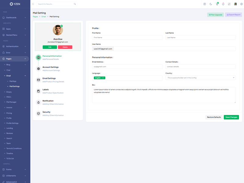 This is the basic information related to “Yzen Nuxt4 Premium Bootstrap Admin Template”.