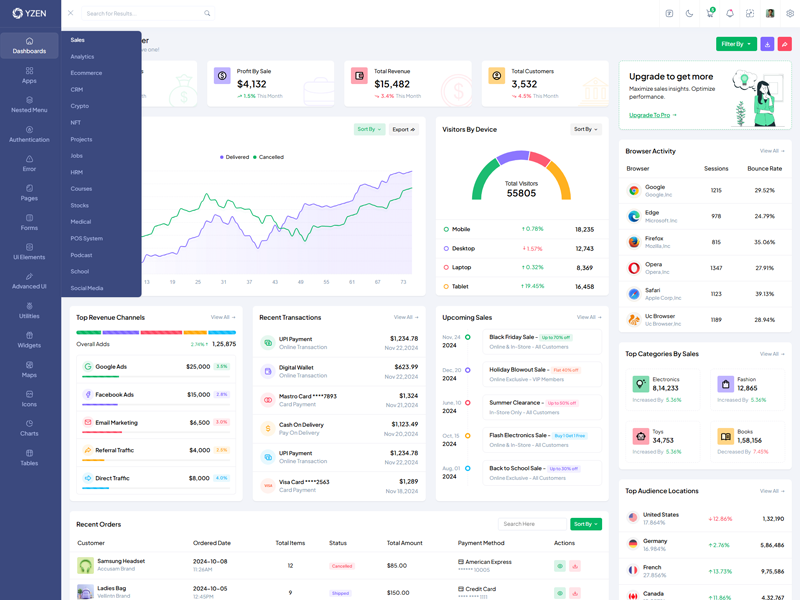 All layouts of Yzen Admin will look great on any device. Yzen Admin template is fully responsive with Bootstrap Framework.